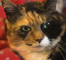 Francine is about 11- 12 years old, Calico, spayed female. She came to us very obese and could not even walk, and she was so matted it took hours to shave her down. She was so neglected in her previous years. But NOW, Francine is doing very well, she has lost over 8 pounds and can groom herself, plus we help her along grooming her too. She is on a strict diet but it is to benefit her health. She has been diagnosed with a UTI with crystals. So she is now eating prescription food C/D dry food. She loves her wet food, so we give her fancy feast and W/D wet food AM and PM at feeding time. She does get some cat treats twice a week, a few pieces. Since Francine has lost the weight she now can play with cat toys, she jumps up on low cat beds, loves cat nip and rolls all around in it. She feels good but does have a little arthritis but she does ok. Francine tries so hard to over come her weight problem. She does a great job doing so !!
